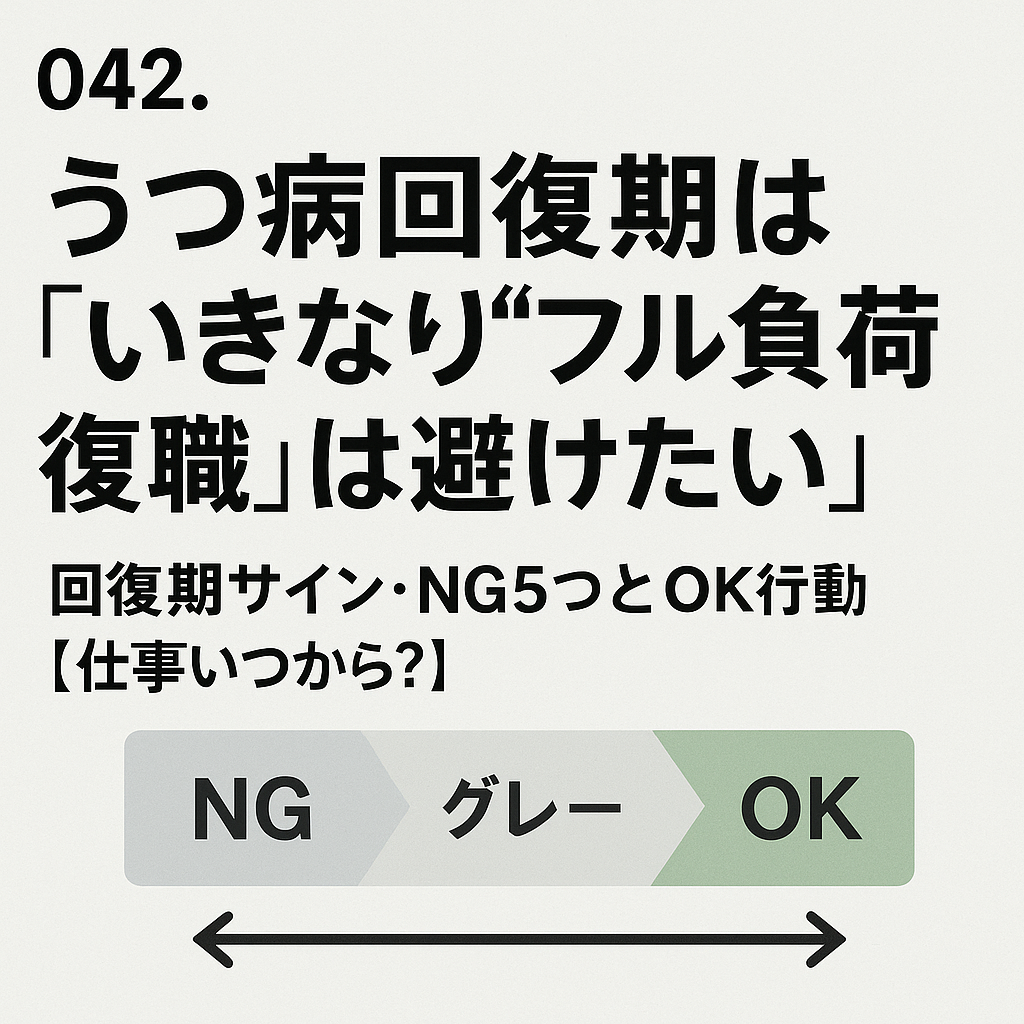 #042. うつ病回復期は「いきなり“フル負荷復職”は避けたい」|回復期サイン・NG5つとOK行動【仕事いつから?】