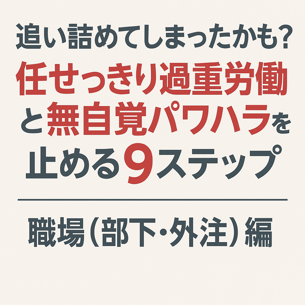 業務委託(外注)で相手を追い詰めてしまったかも…と気づいたら、原因や病名の断定より先に「安全の運用変更(契約・検収・スコープ・連絡ルール)」が優先です。本記事は診断や法的認定は行いません。その代わり、外注で起きがちな丸投げ・過重負荷・追撃(連投・即レス圧)・無限手戻りを止めるために、①スコープ再整理 ②検収条件の明文化 ③追加は別見積・別納期 ④WIP/優先度/期限の再設計 ⑤追撃ゼロの約束 ⑥火事(緊急対応)の定義固定 ⑦5分の擦り合わせ台本 ⑧Slack/メール文例 ⑨第三者ルートまで、同じ9ステップでまとめました。コピペだけでは逆効果。送った後に“追撃ゼロ/負荷設計/障害除去”をセットで実行して、燃えない形で関係を立て直します。