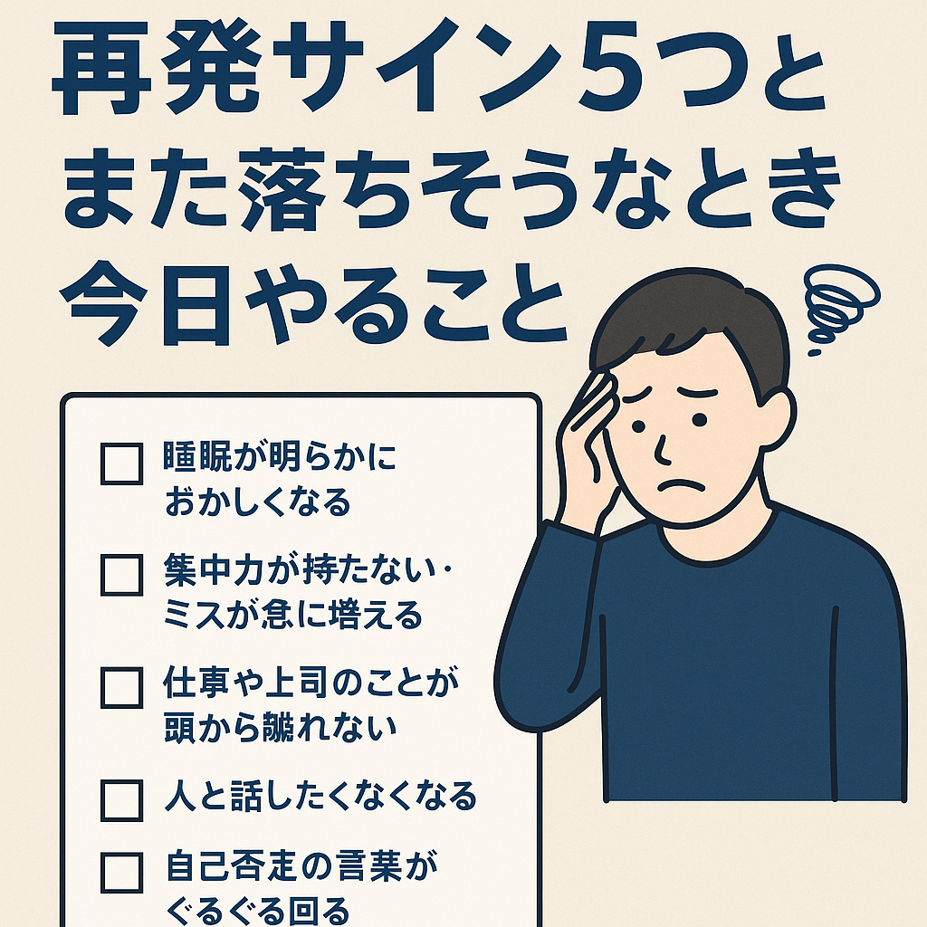 再発したからといって、「自分が弱い」「努力が足りない」わけではありません。再発しやすい病気だからこそ、「前より早くサインに気づける自分になっている」と考える。 ここから先は、そのサインをどう見つけて、どう動くかの話です。